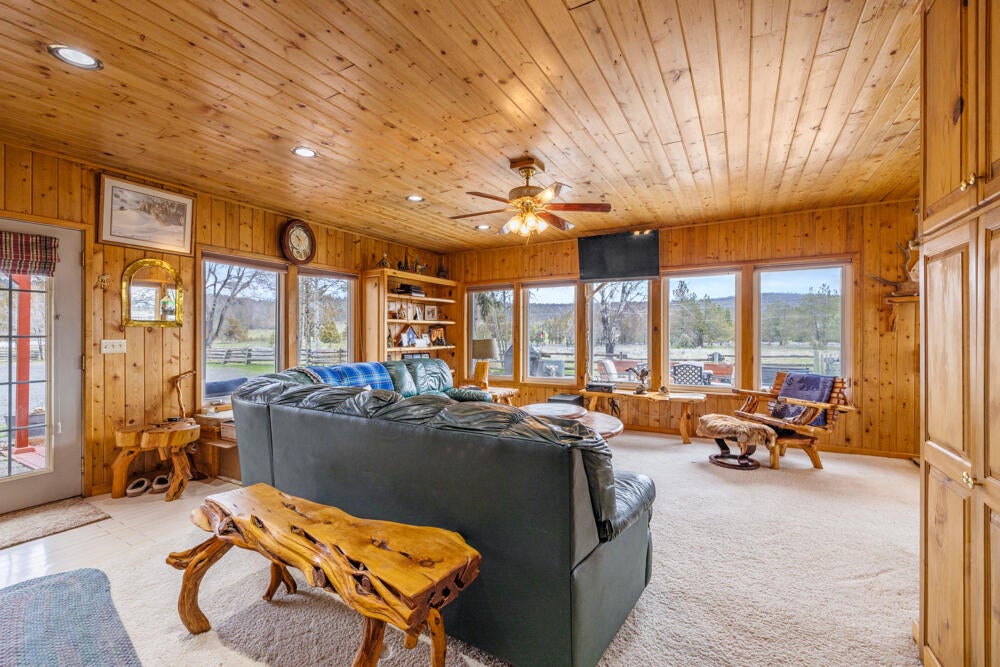 Enjoy the country living, and peace and quiet, with this 3 bed 2.5 bath single story home. This sale includes 2 parcels, totaling just under 40 acres. There is ample storage for machinery, vehicles, RVs or boats with the detached barn/shop, and the detached garage. The perimeter of the property is completely fenced, including some cross fencing as well. The grounds are level and the views of the surrounding mountains in the distance are incredible! The home boasts beautiful natural wood finishes, and has a functional floor plan. There is a primary bathroom as well as a guest bath and an additional toilet in the laundry room. The home has a feel of a cabin, but without sacrificing the functionality of a fairly modern floor plan.